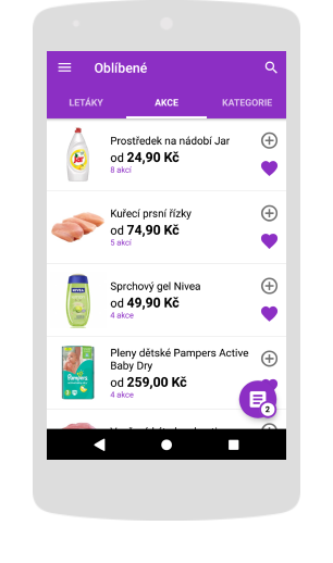 Akční letáky, produkty či kategorie máte pod dozorem. Stačí si je přidat do oblíbených a dáme vám vědět, až budou zase v akci.