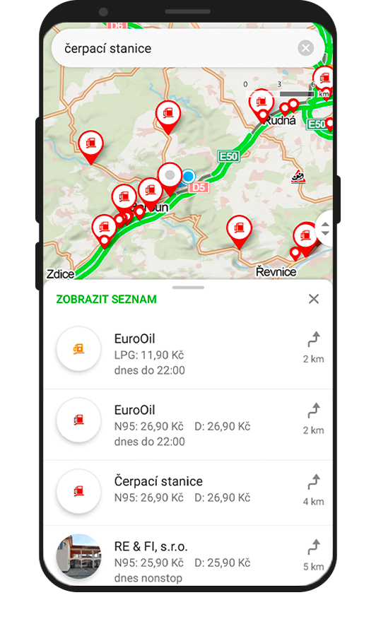 Mapy.com vám najdou nejbližší čerpací stanici včetně cen pohonných hmot, pomohou vám s parkovacími zónami i placením parkovného, které můžete jednoduše uhradit přímo v aplikaci.