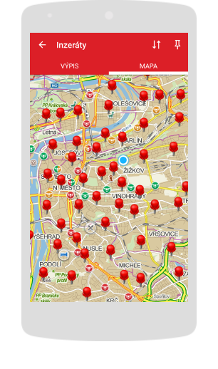 Nemovitosti si zobrazíte ve vybraném městě, ulici nebo v okolí místa, kde se právě nacházíte.