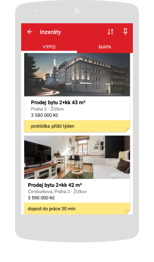 Inzeráty, které vás zaujaly, si můžete uložit mezi oblíbené. Dostanete se k nim pak na jedno klepnutí z úvodní obrazovky nebo ze svého počítače.